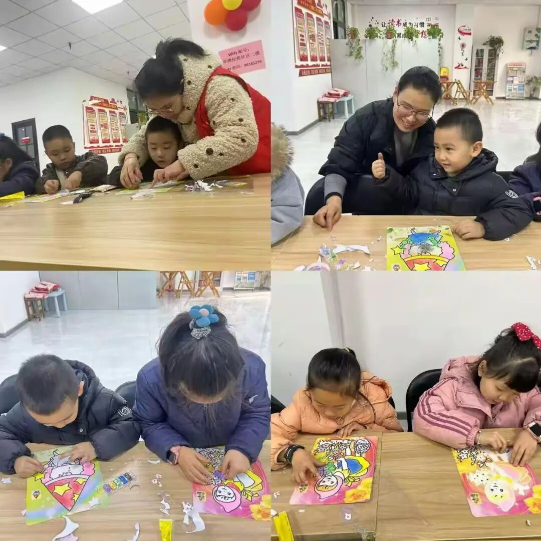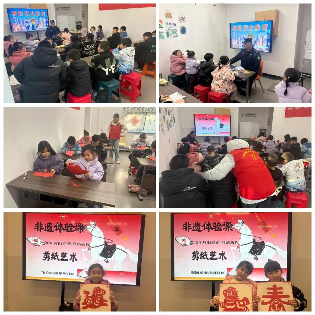 后续几日,课堂内容丰富多样:社区书记讲红色历史课,民警开展反诈安全教学,传统剪纸课让孩子体验手工乐趣;志愿者带领品读经典诗词,搭配击鼓传花、下棋等趣味游戏,让孩子在互动中展才艺、释活力;垃圾分类课堂普及环保知识,绘本阅读课锻炼孩子表达与倾听能力。最后一天,孩子们制作新年贺卡传递祝福、观看精选影片,结业仪式上社区书记回顾历程,为孩子们送上微心愿礼物。