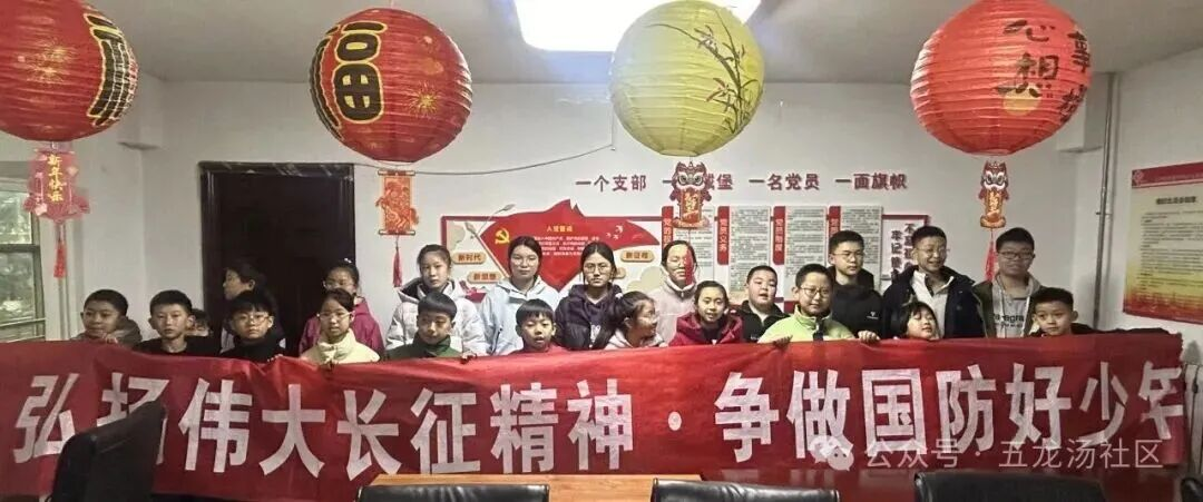 为充实辖区青少年寒假生活,深入推动青少年国防教育走深走实,传承红色基因、厚植爱国情怀,2月5日下午,五龙汤社区联合猛进青少年爱国主义文化研究院开展了2026年寒假社会实践活动——“弘扬伟大长征精神,争做国防好少年”小火种少年军校微课堂,42余名青少年儿童踊跃参与。