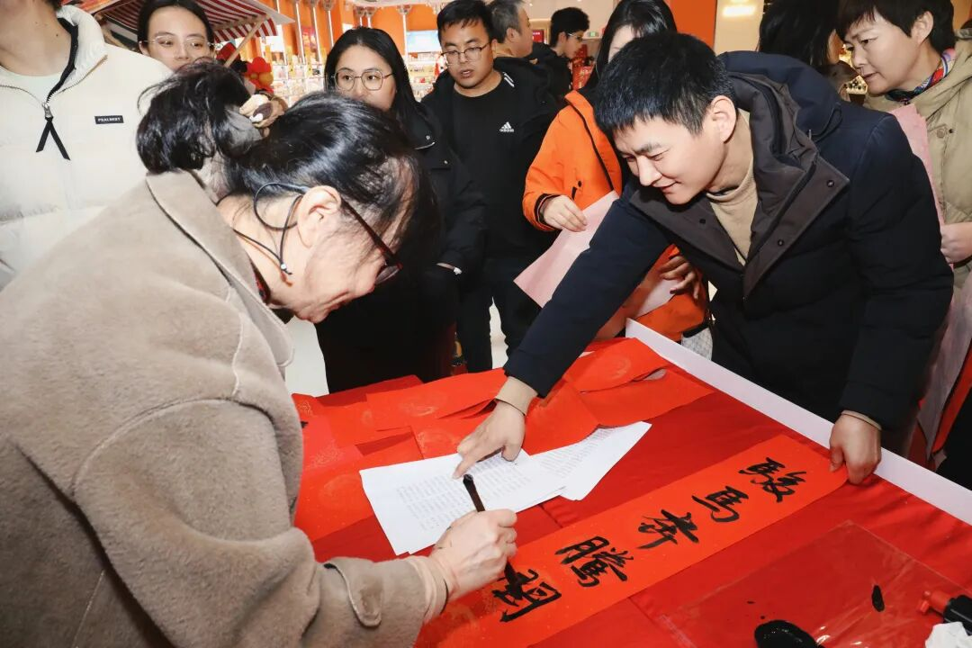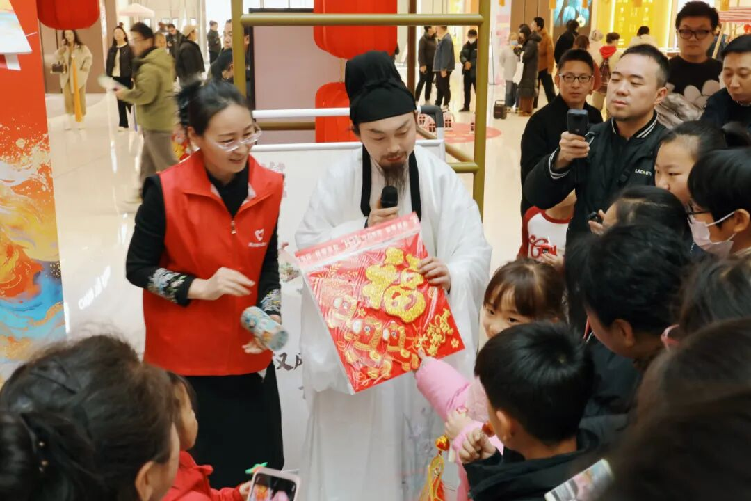 年俗文化体验区翰墨飘香,书法家们挥毫泼墨,“骏马奔腾开锦绣,春风浩荡展宏图”“汉风送福家兴旺,未央迎春岁平安”等兼具马年特色与地域韵味的春联跃然纸上,一个个饱满的“福”字承载着新春祝福,市民们争相领取。