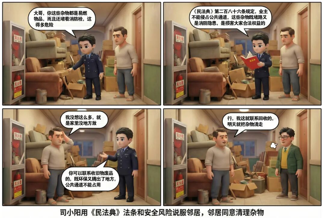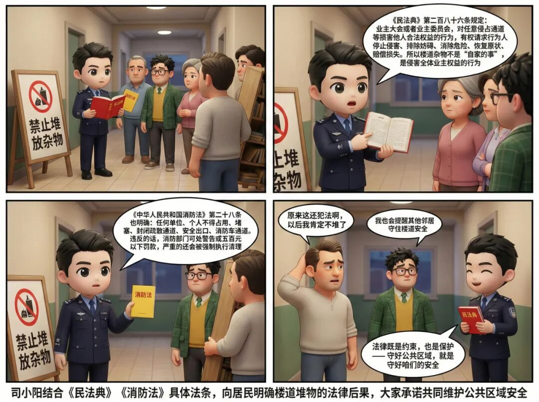 《李四的“法”宝日记》第9期上线啦!李四遇楼道堆物纠纷,司小阳运用《民法典》《消防法》化解矛盾,守护公共安全。