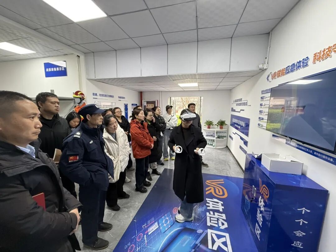 为切实增强培训交流实效,推动消防安全知识入脑入心、落地见效,本次活动还组织参观了应急消防科普体验站,借助VR虚拟现实技术,参训人员沉浸式体验厨房灶台起火、电器短路等典型火灾隐患场景,直观感受火灾发生全过程,熟练掌握应急处置流程和逃生技巧。同时,大家参观了社区应急物资储备库,认真学习救援装备的日常管理、维护保养及规范使用要点,进一步提升辖区应急物资保障规范化、标准化水平。